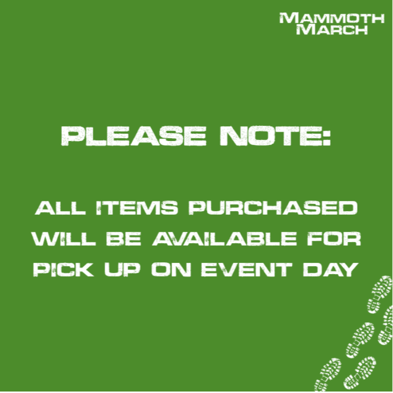 • Unique, limited-edition 2026 MammothMarch event shirt • 5.3 oz./yd², 100% polyester • Cotton feel ### PLEASE NOTE: All items purchased will be available to pick up on event day ###